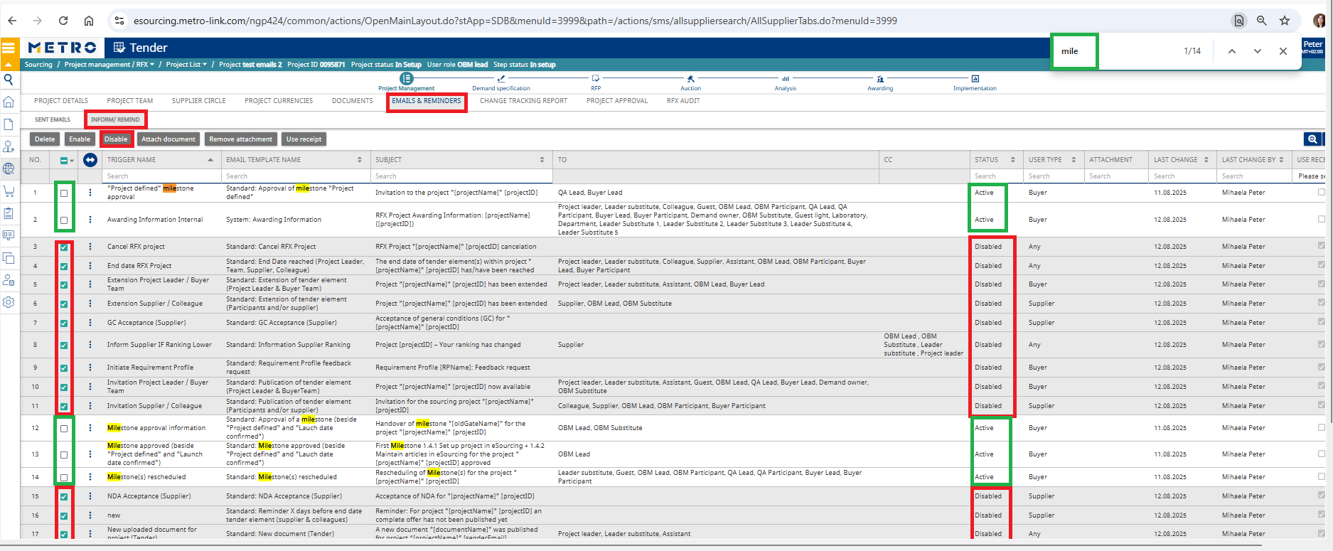 Step 1: Open the Project and Deactivate Emails & Reminders