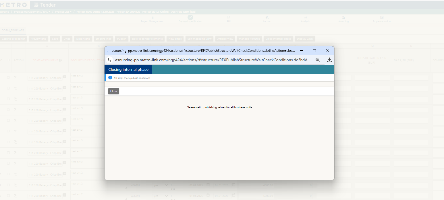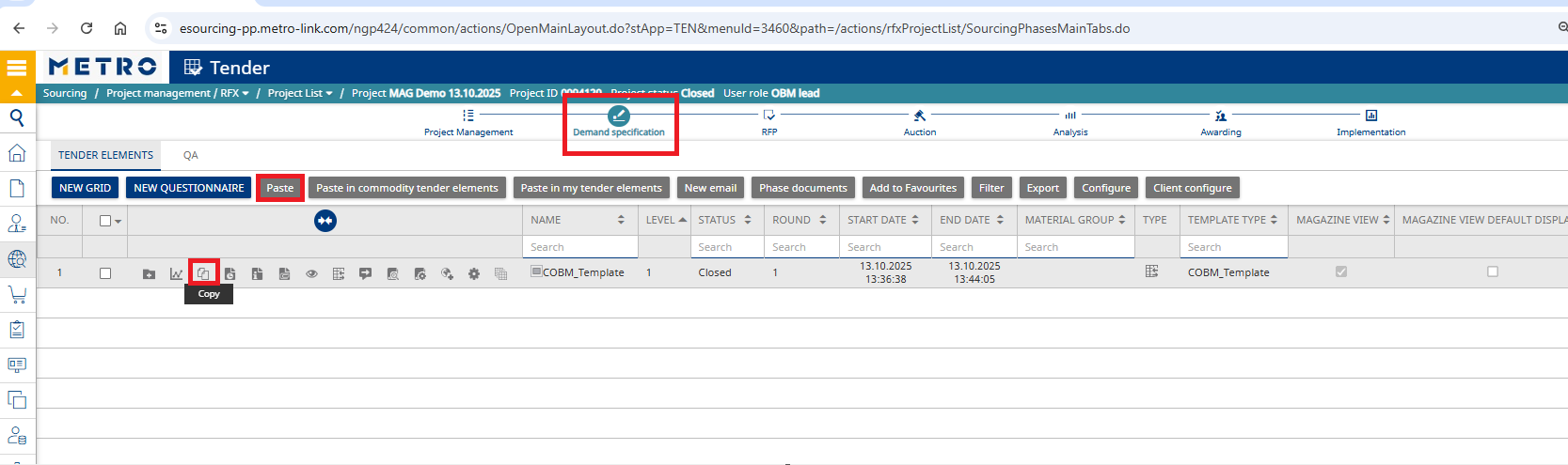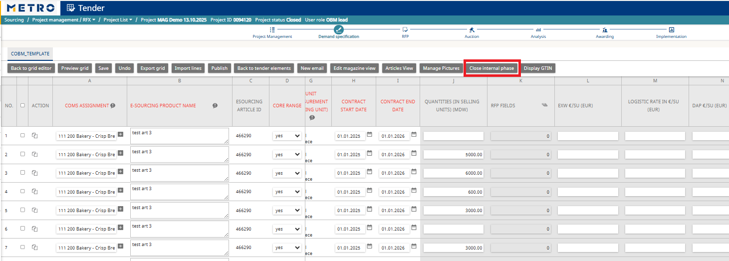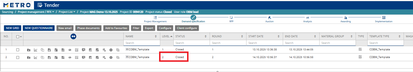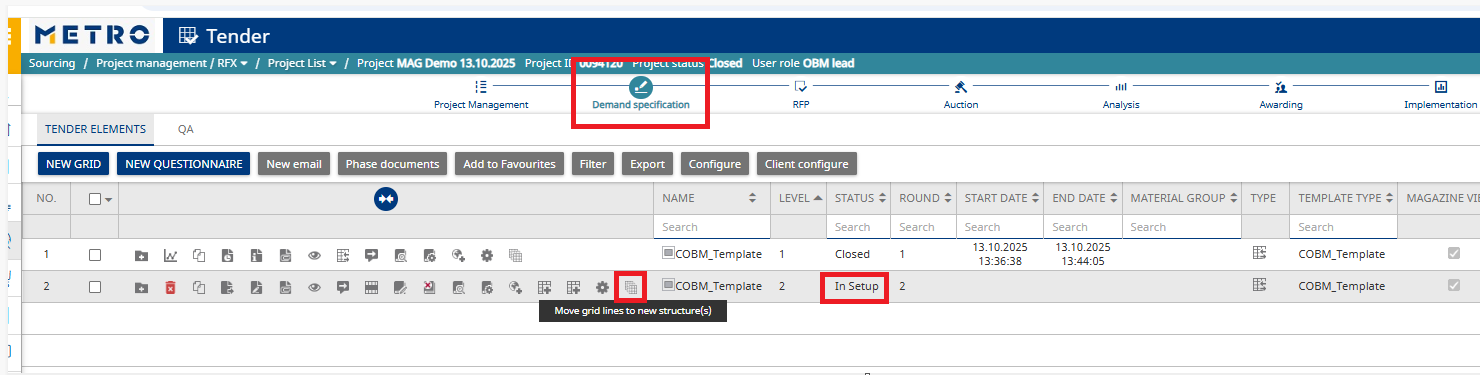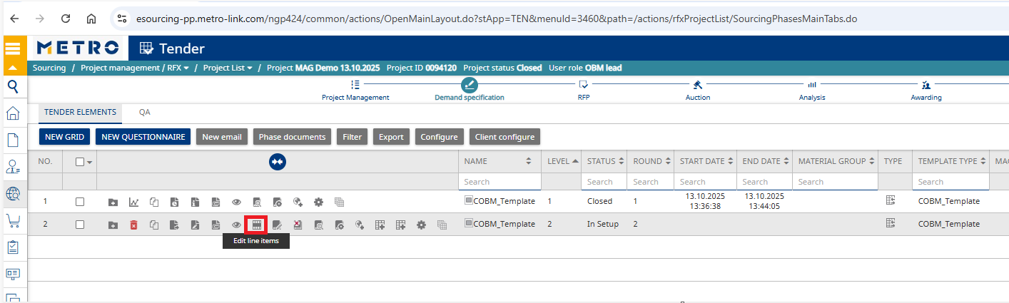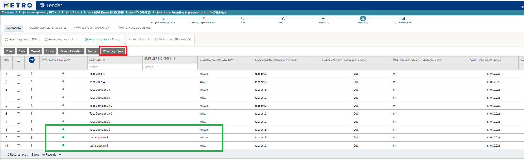 - Delete articles that will not be awarded - from the original grid (Tender Elements → Previewer on Grid 1 → Delete).