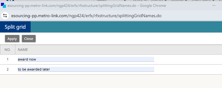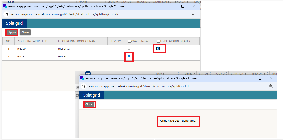 If you need to award only some articles urgently and are not ready to award all of them, you can split the grid by following the steps below. If this does not apply, skip to Step 3.