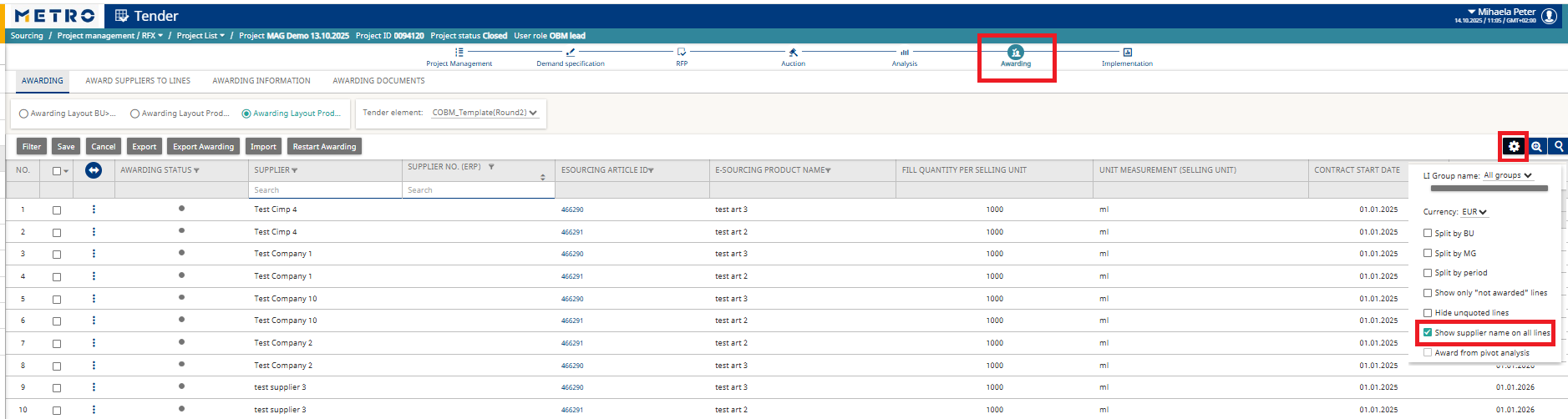 - Click the Wheel icon → Show supplier name in all lines for better visibility.