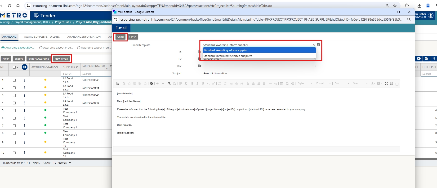 - Use New Email option in Awarding screen and Choose one of the two templates: