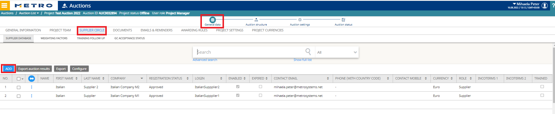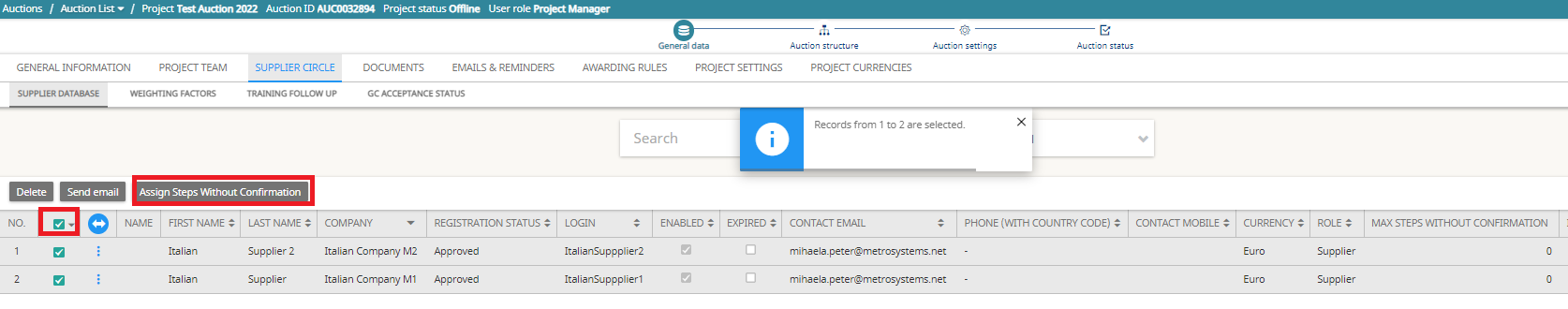- Important: If awarding will follow the auction, ensure all suppliers are present in the RFX (not only in the Auction).