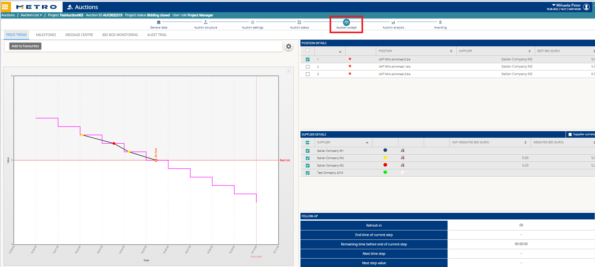 - Use new price Line item if you need to create new Positions (if the Auction was created as Stand alone and not from an RFP.