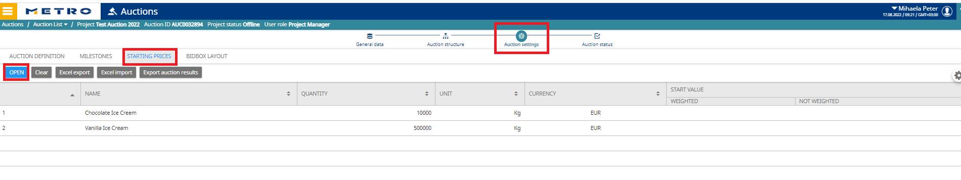 Path: Auction → Settings → Starting Prices