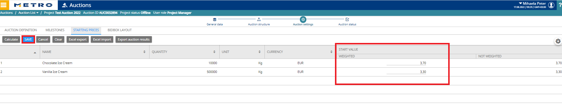 - Optionally define Start Prices for each article (and, if your configuration requires it, per supplier).