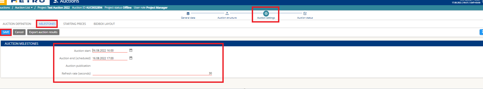- Set Auction Start and Auction End date/time.