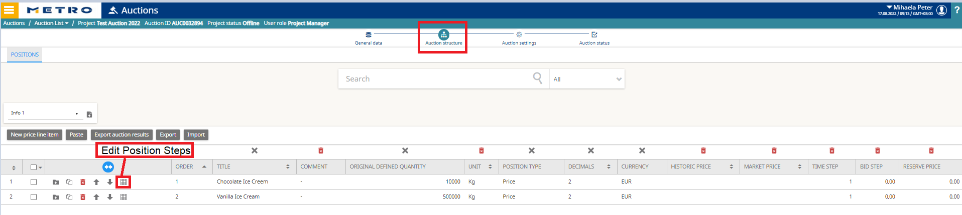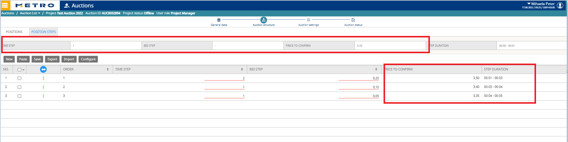- The full sequence of individual Time & Bid Steps at Auction Structure → Position Steps.