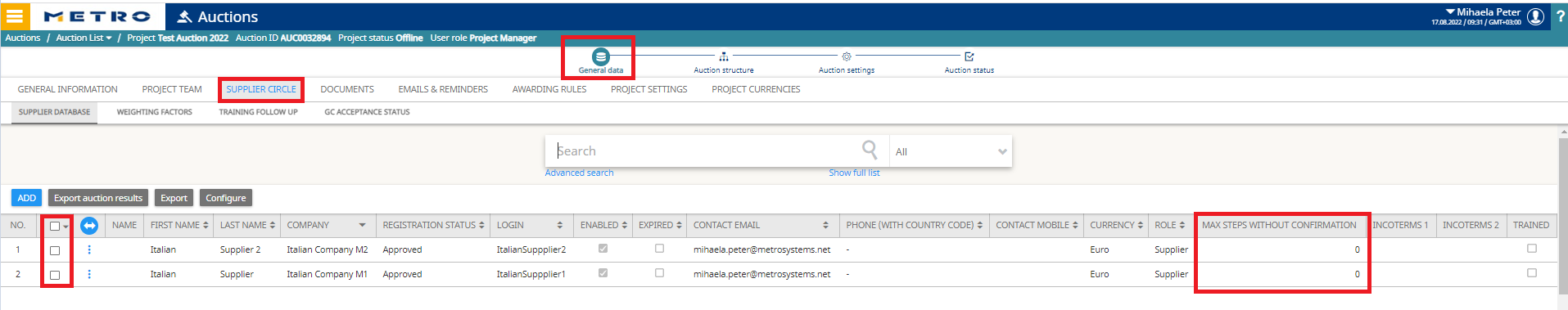 - Select the supplier → set Max. steps without confirmation (i.e., number of Jokers).